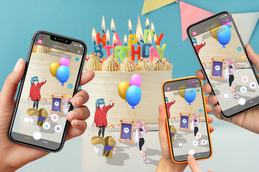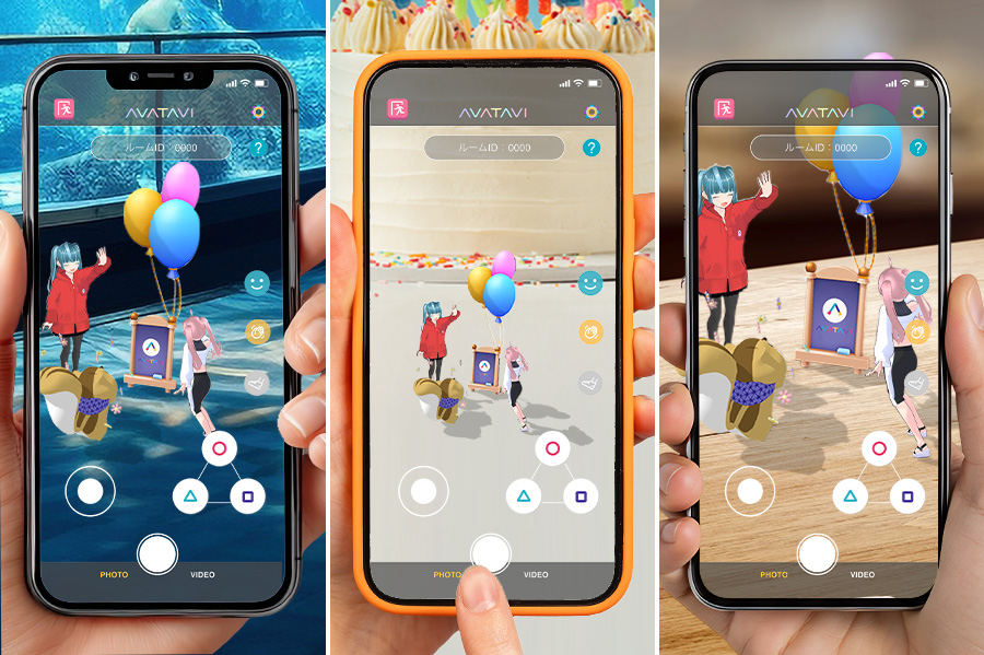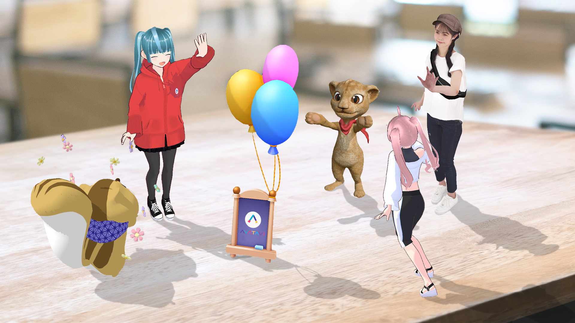 友だちとAR空間で集まって、アバター同士が一緒に動いたり、