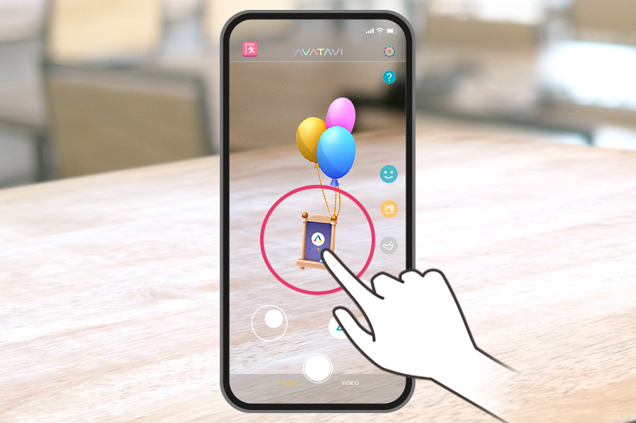 マルチプレイ機能では、会場の中心となるオブジェクトを共有します。 アバターを出したい場所をきめる時のように、会場の中身をタップで決定してください。